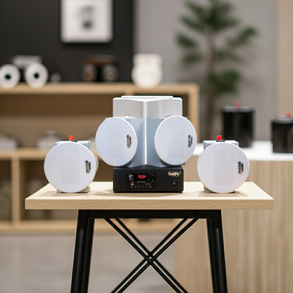 GoldSound xin giới thiệu dàn loa âm trần, loa thông báo, loa phát nhạc nền tự động: 01 amply A2.0 + 4 loa âm trần VAT12 chuyên lắp cho Quán Cafe, spa, quán ăn, quán trà chanh, trà sữa, shop thời trang, tiệm hair salon...