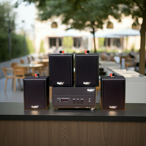 Goldsound xin giới thiệu: Combo dàn âm thanh quán cafe Amply A156PU + 4 V24C dành riêng lắp không gian quán Cafe, Nhà hàng, Quán ăn, Spa, quán trà chanh, trà sữa, quán ăn, văn phòng...)