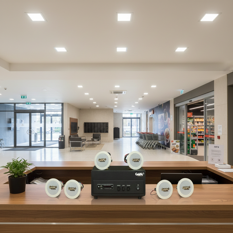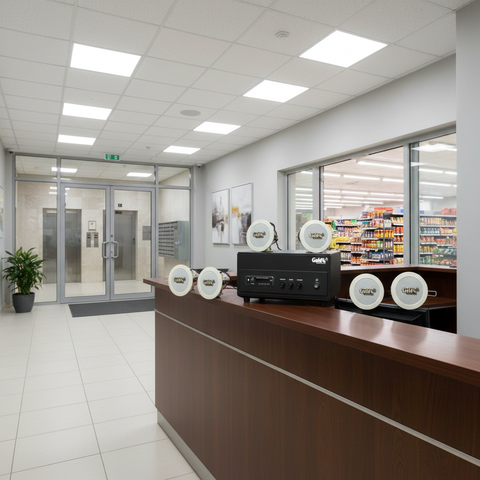 Loa âm trần VAT8 được khuyến nghị nên lắp đặt cùng hệ thống âm ly tích hợp bộ xử lý của Goldsound (có tích hợp bluetooth, cổng USB, AUX, khe thẻ nhớ)