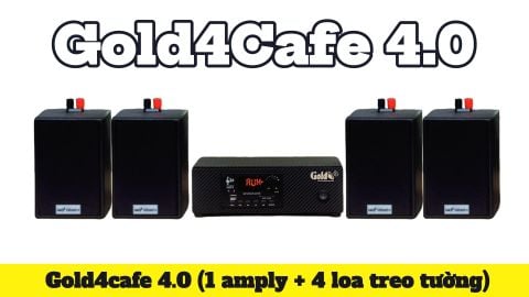 Dàn loa quán cafe Loa thông báo, loa phát nhạc nền tự động Gold4Cafe 4.0: 01 amply A2.0 + 4 loa treo tường V12