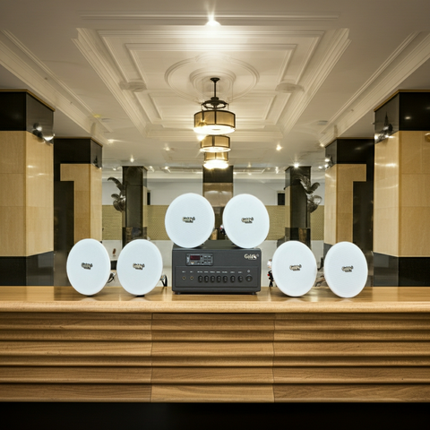 Goldsound xin giới thiệu giải pháp âm thanh, hệ thống loa lắp đặt cho quán cafe, nhà hàng, spa, khu nghỉ dưỡng, toà chung cư, khu liên hợp, văn phòng công ty... A384PU-2K Goldsound 380w + 6 loa âm trần VAT14 phù hợp cho quán không gian từ 90-120m2