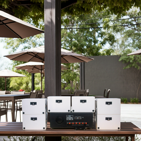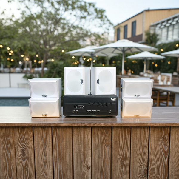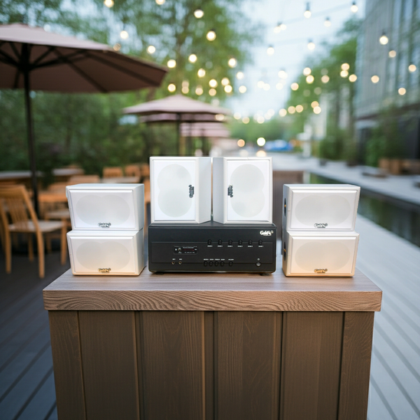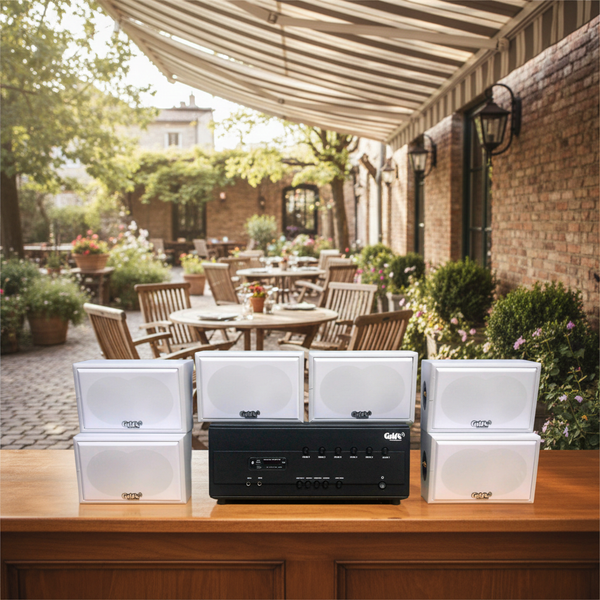 Goldsound xin giới thiệu: Combo dàn âm thanh quán cafe A384PU-6K + 6V50NT-PU dành riêng lắp không gian ngoài trời, trước cửa quán, khu vực bên trong của Quán Cafe, Nhà hàng, Quán ăn, Spa, Khu tập Gym, khu vui chơi...