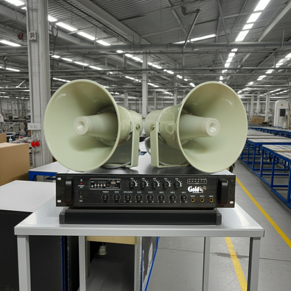Goldsound Audio xin giới thiệu hệ thống âm thanh thông báo: Amply A480F + 02 Ne65w thích hợp sử dụng trong không gian rộng lớn như trường học, khu vực công cộng, nhà xưởng, bệnh viện, các khu vực thông báo ngoài trời, hệ thống âm thanh công cộng... đáp ứng nhu cầu truyền tải âm thanh rõ ràng, dùng trong âm thanh thông báo, phát nhạc nền