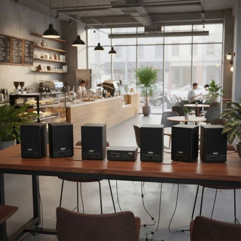 Hệ thống âm thanh không dây chuyên dụng cho cả nghe nhạc nền và phát thông báo nội bộ phù hợp lắp đặt tại quán cafe, nhà hàng, quán ăn, spa, shop thời trang, văn phòng công ty, siêu thị, quán trà sữa, trà chanh...