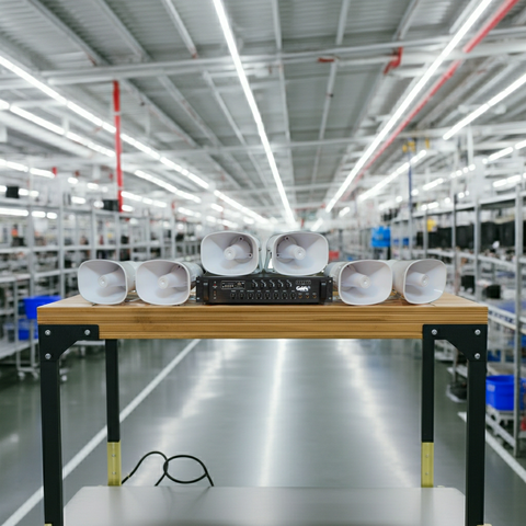 Goldsound Audio xin giới thiệu hệ thống âm thanh thông báo: Amply A550F + 06 Ne35w, phù hợp lắp đặt cho nhà xưởng, nhà máy, trường học, bệnh viện, trung tâm thương mại, siêu thị, toà nhà chung cư, các khu vực ngoài trời, quảng trường, sân chơi, công viên...