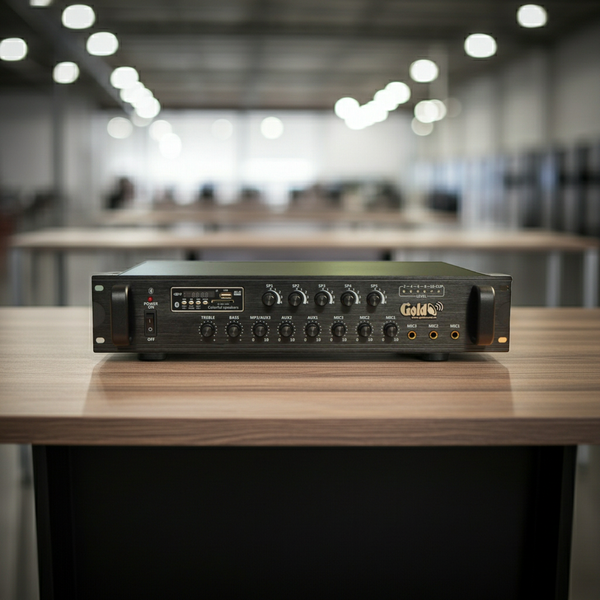 Amply A550F: âm ly phóng thanh (công suất 550w, 5 vùng, bluetooth, USB, SD Card, AUX) thích hợp sử dụng trong không gian rộng lớn và công cộng cần hệ thống âm thanh đa vùng như trung tâm thương mại, siêu thị vừa và nhỏ, sân vận động, nhà xưởng, trường học hay quán cafe, nhà hàng, văn phòng...để phát thông báo, phát nhạc nền.