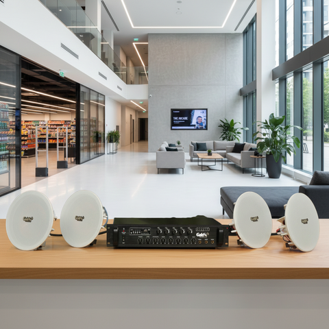 Goldsound xin giới thiệu giải pháp âm thanh, hệ thống loa lắp đặt cho quán cafe, nhà hàng, spa, khu nghỉ dưỡng, toà chung cư, khu liên hợp, văn phòng công ty... A550F Goldsound 550w + 4 loa âm trần VAT27 phù hợp cho quán không gian từ 80-120m2
