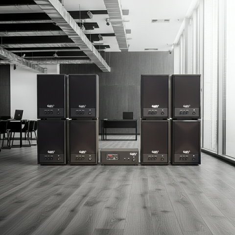 Dàn loa không dây treo tường Goldsound mang đến âm thanh rõ ràng, phủ kín toàn bộ không gian. Phù hợp lắp đặt cho không gian quán từ 200 - 240m2