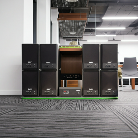 Goldsound xin giới thiệu dàn loa không dây treo tường: 01 amply A57 UHF Goldsound + 8 loa không dây Goldsound V57 UHF - 57w