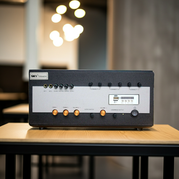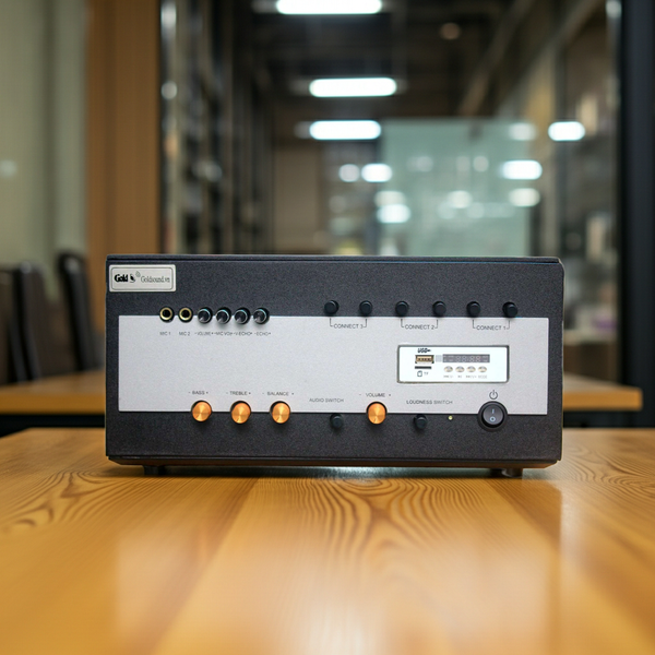 4. Bộ xử lý trung tâm A700M Goldsound đảm đương tốt việc tái tạo chất âm trung thực dành cho các file nhạc chất lượng cao. Kết nối dễ dàng với: Điện thoại, máy tính, Đầu đầu đĩa, laptop, micro.