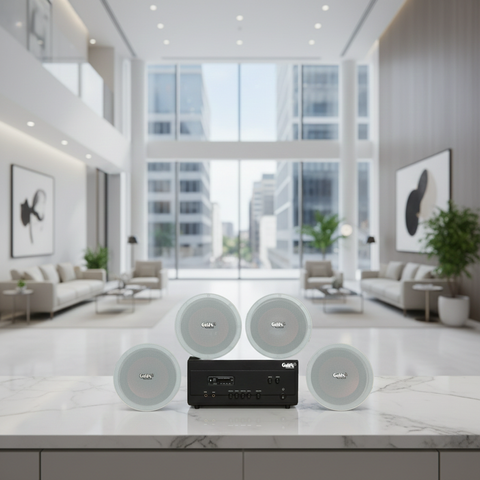 Goldsound xin giới thiệu giải pháp âm thanh, hệ thống loa lắp đặt cho quán cafe, nhà hàng, spa, khu nghỉ dưỡng, toà chung cư, khu liên hợp, văn phòng công ty... A907PU-2K Goldsound 900w + 4 loa âm trần VAT27 phù hợp cho quán không gian từ 80-120m2