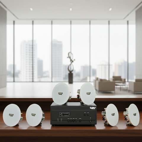 Goldsound xin giới thiệu giải pháp âm thanh, hệ thống loa lắp đặt cho quán cafe, nhà hàng, spa, khu nghỉ dưỡng, toà chung cư, khu liên hợp, văn phòng công ty... A907PU-2K Goldsound 900w + 6 loa âm trần VAT14 phù hợp cho quán không gian từ 90-120m2