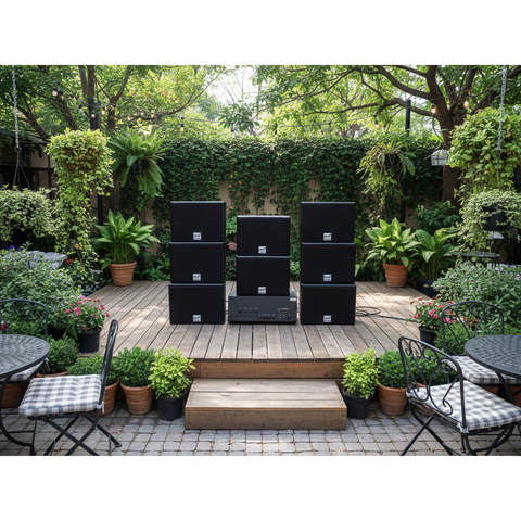 GoldSound xin giới thiệu: Combo dàn âm thanh quán cafe A917 - 4K + 8 V130NT dành riêng lắp không gian ngoài trời, trước cửa quán của Quán Cafe, Nhà hàng, Quán ăn, Spa, Khu tập Gym...quán cafe sân vườn