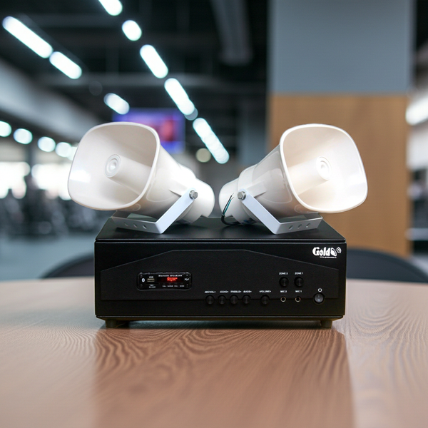 GoldSound Audio xin giới thiệu hệ thống âm thanh thông báo: Amply A917PU-100V-2K + 02 loa Ne20w phù hợp lắp đặt cho nhà xưởng, nhà máy, trường học, bệnh viện, trung tâm thương mại, siêu thị, toà nhà chung cư, các khu vực ngoài trời, quảng trường, sân chơi, công viên...khu vực không gian vừa và nhỏ