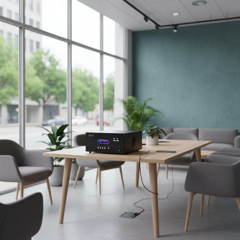 Âm ly cho quán cafe: A904 (2 phân vùng đầu ra, 900w, đủ kết nối Bluetooth, RCA, AV, USB) chuyên dụng cho quán cafe, nhà hàng.
