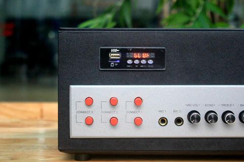 2. Bộ xử lý trung tâm A380 Goldsound tích hợp sẵn 02 cổng cắm Mic có thể sử dụng Mic có dây và không dây, cực kỳ tiện lợi cho khách hàng khi cần sử dụng để thông báo chương trình khuyến mại, hoặc thảo luận, phát biểu trước đám đông trong quán.
