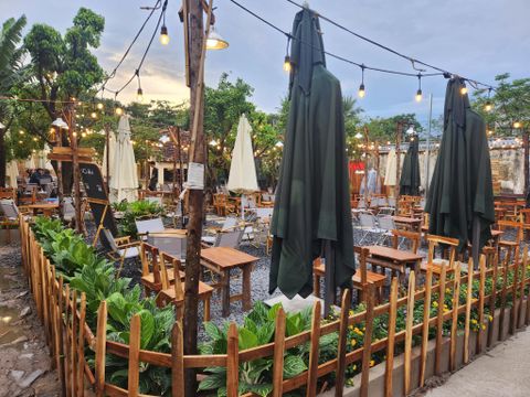 Không gian ngoài trời của Cà Phê Mẹ Ơi, Goldsound tư vấn lắp loa chống nước V50NT