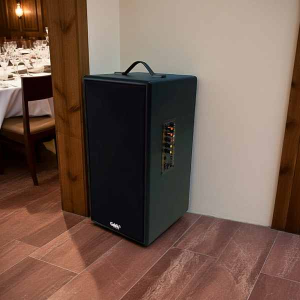 Loa Bluetooth D160PU-PI Goldsound được thiết kế tối giản nhất có thể giúp người dùng có thể dễ dàng di chuyển, thùng loa được làm từ 100% gỗ MDF nhập khẩu Malayxia cao cấp