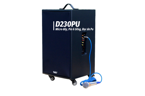 Loa di động D230PU công suất 230w. Loa D230PU sở hữu hệ thống 2 loa gồm: 1 loa bass 25cm; 01 treble mang lại âm thanh mạnh mẽ, sống động; Âm treble mịn, sáng rõ, ngọt ngào, thanh thoát