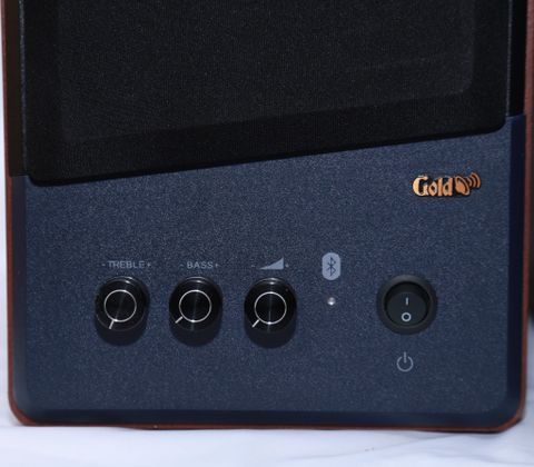 Thay vì 4 màng loa trong một thùng loa như GoldTV, GoldHifi - Bluetooth có 3 màng loa ở ngay mặt trước có đường kính lớn hơn tương đối so với GoldTV và không có sub đánh ngang. Loa kênh trái sẽ có bố trí nguồn và bộ điều kiển. Ngay mặt trước của loa trái chúng ta có các nút vặn tăng chỉnh âm lượng, tăng chỉnh bass-treb, bên cạnh đó là nút nguồn và đèn báo Bluetooth. Mặt sau loa gồm các cổng kết nối và lỗ thoát khí khuếch đại âm thanh, bạn nên đặt loa cách tường bằng khoảng 1/3 – 1/5 chiều dài phòng hoặc tối thiểu 30cm.