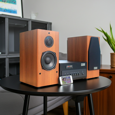 Dàn âm thanh mini V410 cao cấp thiết kế vân gỗ sang trọng, bóng bảy thiết kế nhỏ gọn thích hợp đặt tại không gian phòng khách, góc giải trí của gia đình, hay đặt tại phòng ngủ, phù hợp mọi không gian nhỏ hẹp.