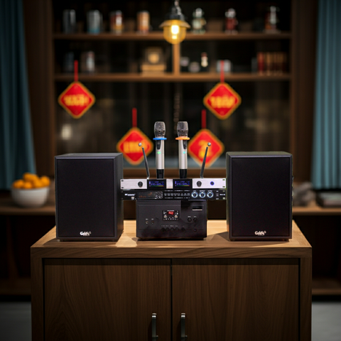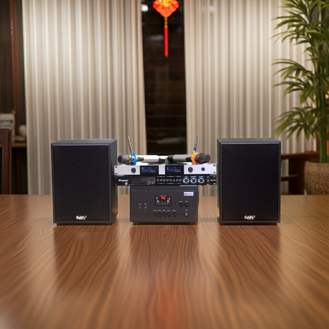DÀN KARAOKE GOLD120A: (AMPLY 900W + 2 V120 120W + bộ micro không dây + vang) hát hay, giá rẻ. Được phối ghép từ thiết bị âm thanh chất lượng. Dàn âm thanh đáp ứng nhu cầu nghe nhạc, xem phim, hát karaoke với không gian 15-20m2