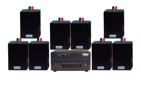 8. Amply công suất (380w) (điều chỉnh 2 khu âm thanh riêng biệt) chuyên dụng cho quán dễ phối ghép với nhiều loa vệ tinh của Goldsound và nhiều hãng khác