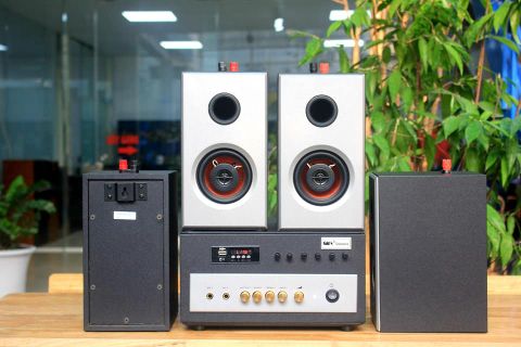 Lựa chọn 2: lúc bạn mới vào nghề dịch vụ, bạn mua loa vi tính hoặc tận dụng dàn âm thanh gia đình để làm loa cho quán.