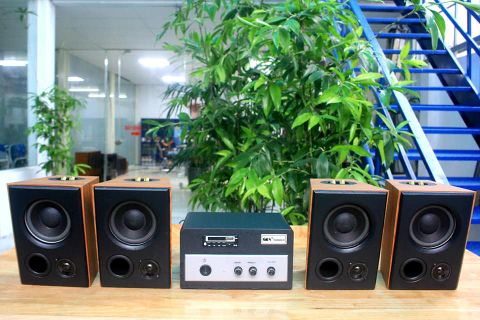 Lựa chọn 2: lúc bạn mới vào nghề dịch vụ, bạn mua loa vi tính hoặc tận dụng dàn âm thanh gia đình để làm loa cho quán.