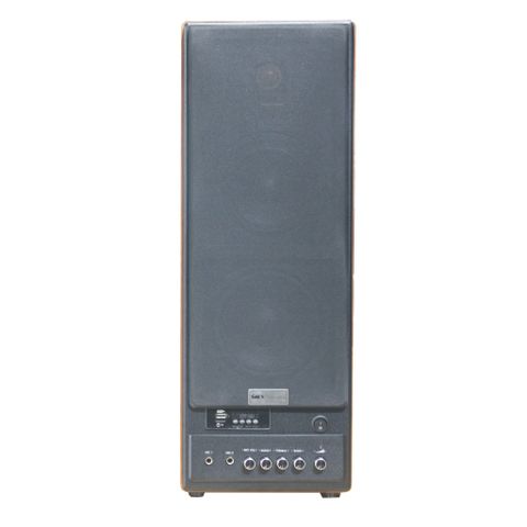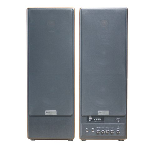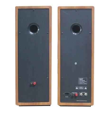 GoldHifi - Bluetooth là dạng loa 2.0 nên sẽ có duy nhất 2 thùng loa. Hai thùng loa này không được làm hình hộp chữ nhật như đơn thuần mà có các góc nghiêng nhẹ ở mặt trước và cạnh trên, đem lại cảm giác bớt nhàm chán hơn trong thiết kế. Loa có hộp âm được làm hoàn toàn bằng gỗ, phủ bên ngoài một lớp PVC vân gỗ. Lần này GoldSound chọn lớp vẫn gỗ này ngả vàng nhiều hơn, sẽ thích hợp với kệ tủ đồ gỗ cổ điển kiểu Việt Nam.
