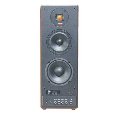 Thay vì 4 màng loa trong một thùng loa như GoldTV, GoldHifi - Bluetooth có 3 màng loa ở ngay mặt trước có đường kính lớn hơn tương đối so với GoldTV và không có sub đánh ngang. Loa kênh trái sẽ có bố trí nguồn và bộ điều kiển. Ngay mặt trước của loa trái chúng ta có các nút vặn tăng chỉnh âm lượng, tăng chỉnh bass-treb, bên cạnh đó là nút nguồn và đèn báo Bluetooth.