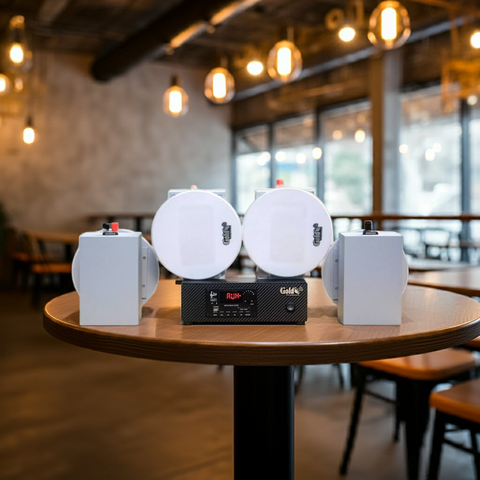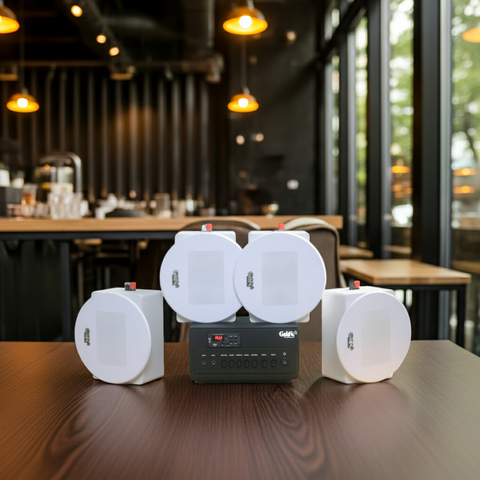 | 4 | Bộ loa âm trần 4.0 (âm ly rời + 4 loa vệ tinh) - Diện tích: 40 - 60m2 - Hệ thống cho chất lượng âm thanh không có tạp âm. - Dễ sử dụng, độ bền cực cao - Chế độ bảo hành dài hạn 5 năm 1 đổi 1. - Khuyến mại miễn phí vận chuyển - Link sản phẩm: Gold4cafe 1 amply + 4 loa âm trần | 3.x triệu |