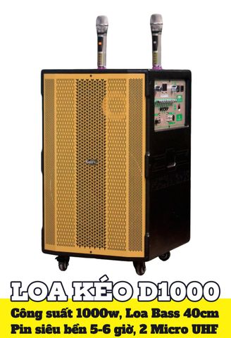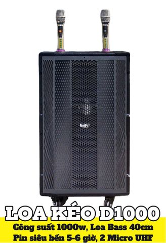 Loa kéo D1000 Goldsound là dòng loa kéo di động bass 40 cm hát karaoke, nghe nhạc hay. Sản phẩm sở hữu thiết kế gọn gàng, mang tính di động cao. Với công suất mạnh mẽ 1000w phù hợp cho các buổi dã ngoại, party, picnic mọi lúc mọi nơi hoặc hội trường không gian nhỏ và vừa...