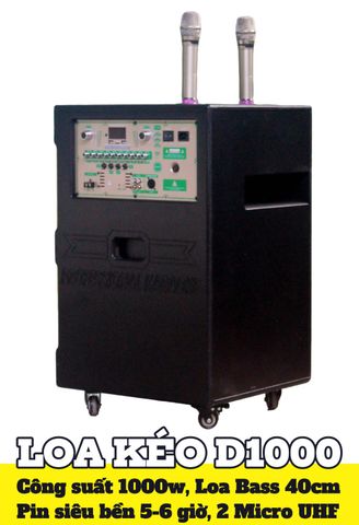Đi kèm với loa kéo D1000 là 2 tay Micro không dây. Micro sử dụng tần số UHF, có khả năng bắt sóng nhanh chóng, chuẩn xác, thu tiếng trong trẻo mang lại giọng hát chuyên nghiệp