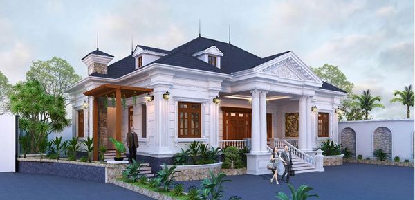 Combo 1: Loa âm trần và loa treo tường phát nhạc cho biệt thự thiết kế phong cách tân cổ điển kết hợp sân vườn