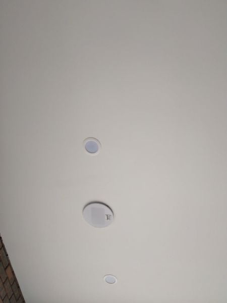 Sử dụng loa âm trần VAT38 (38w/loa) thiết kế màu trắng,
