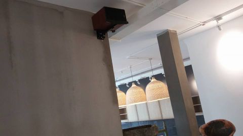 Loa treo tường lắp cho The Coffee House tích hợp cả loa bass, treble đem lại chất âm đặc biệt không có tạp âm