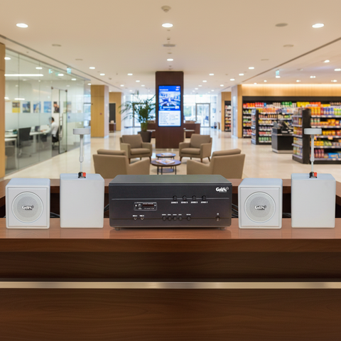 COMBO 4: Amply A384PU-4K + 4 loa V55TR-PU (màu đen/màu trắng) - phù hợp cho quán diện tích 60-80m2