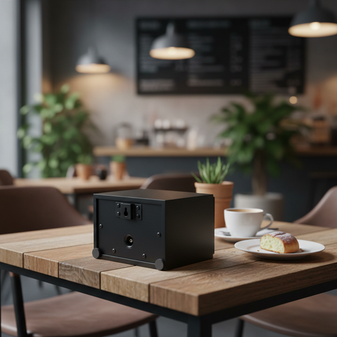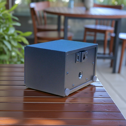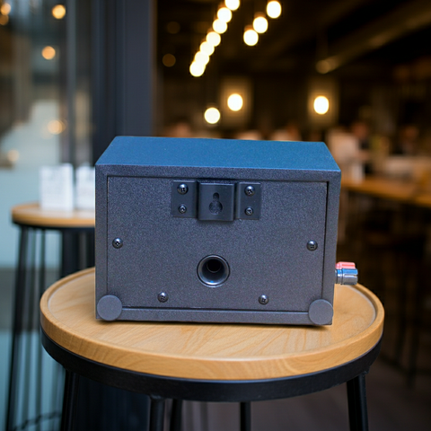 Thùng loa được thiết kế với mầu đen, thiết kế thẩm mỹ cao rất dễ dàng phối mầu cùng các không gian dành cho quán Cafe, Nhà hàng, Quán ăn, Spa, Khu tập Gym.