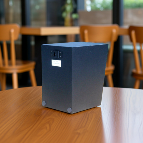 3. Kích thước thùng loa V40: 15*25*24. Thùng loa được thiết kế với mầu đen, rất dễ dàng phối mầu cùng các không gian dành cho quán Cafe, Nhà hàng, Quán ăn, Spa, Khu tập Gym.